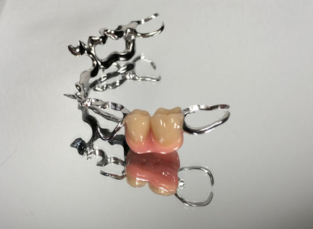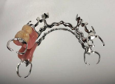 Une prothèse métallique à base de chrome cobalt prenant appui sur des dents restantes apportent maintien, solidité, finesse et durabilité.